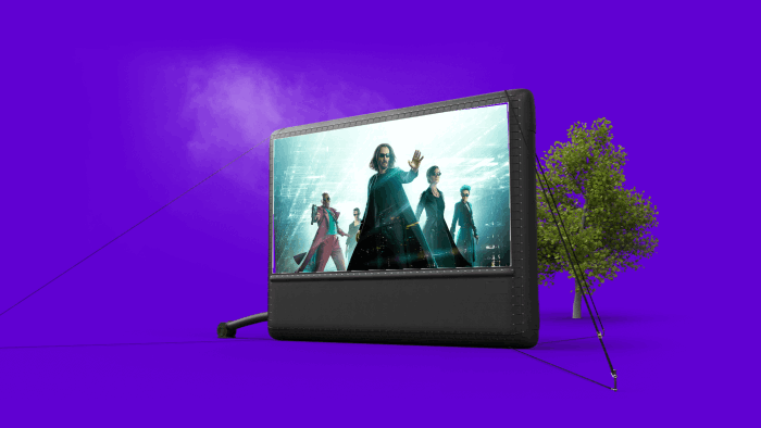 consigue un proyector para mostrar las películas favoritas de tus vecinos en una noche cálida.